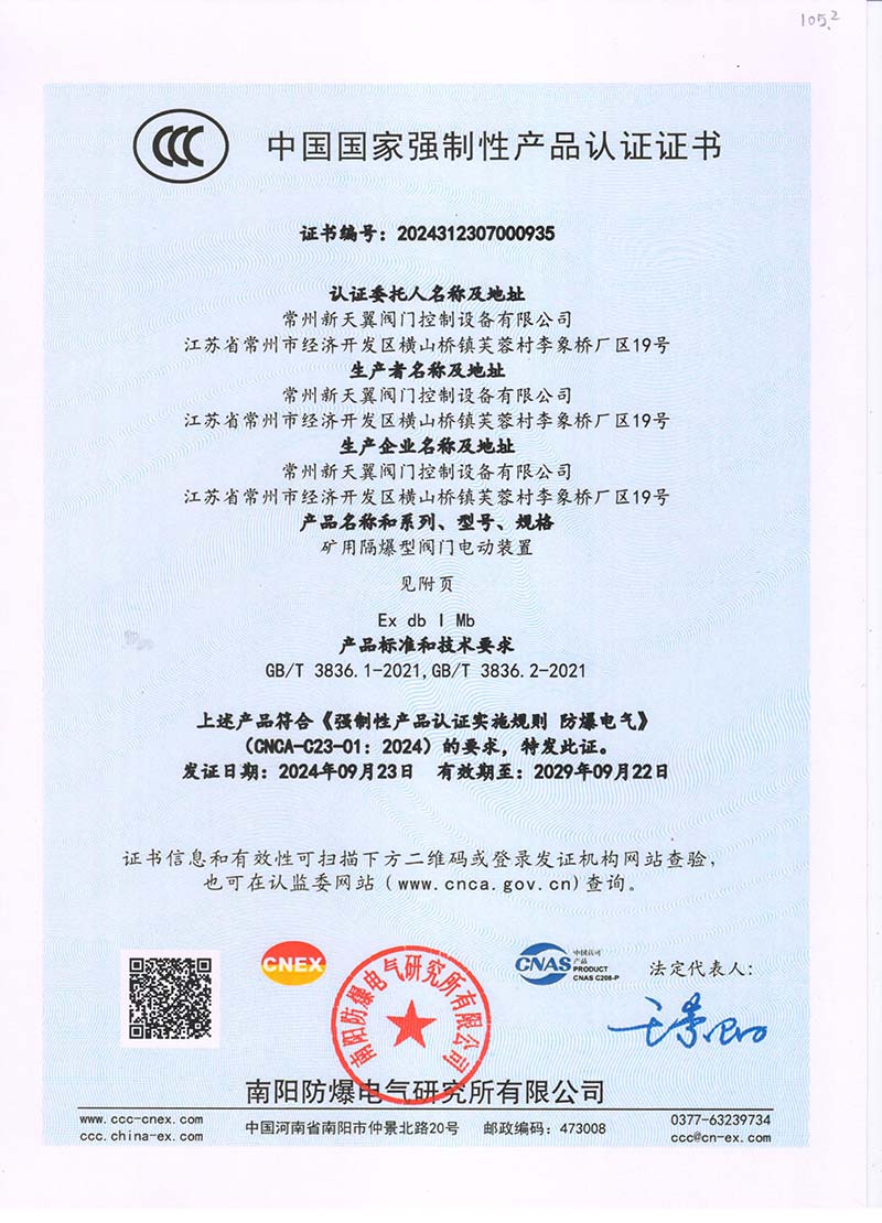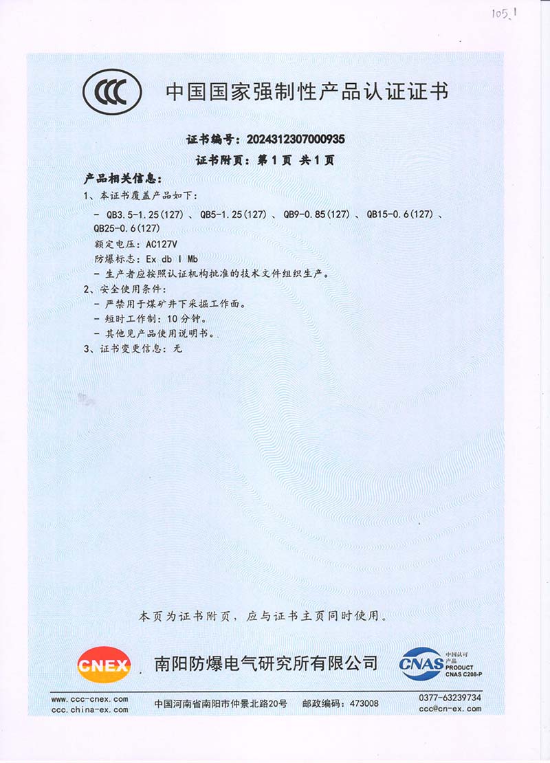 礦用隔爆QB127V中國國家強制性產(chǎn)品認(rèn)證證書105.2