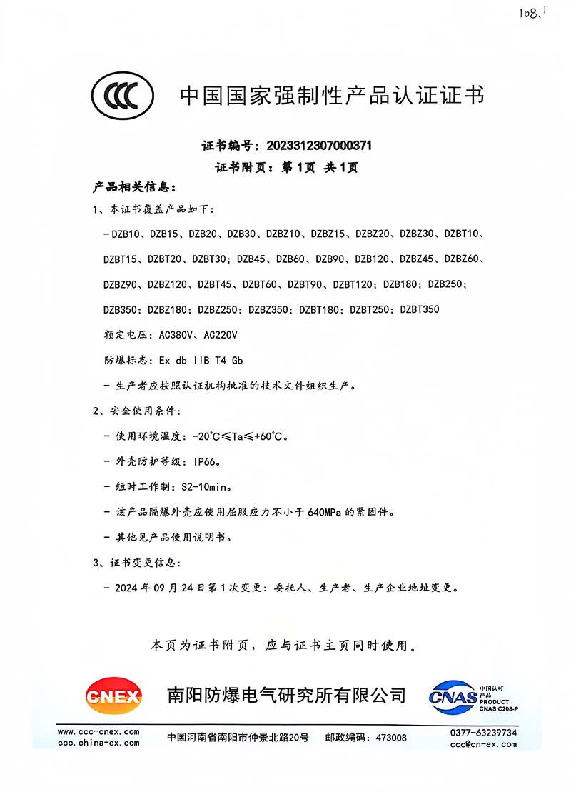 隔爆型DZB 中國國家強制性產(chǎn)品認(rèn)證證書108.1