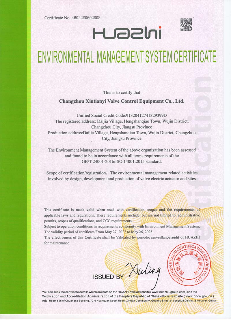 環(huán)境管理體系認(rèn)證證書 英文版