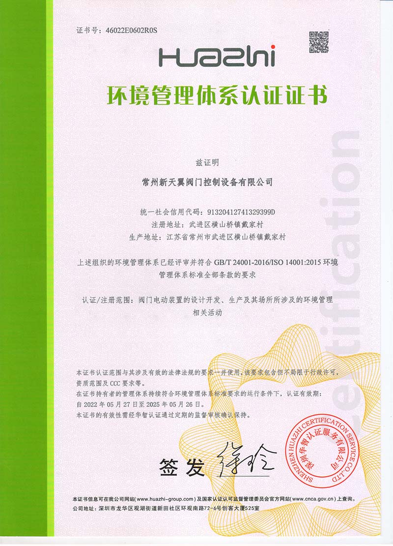 環(huán)境管理體系認(rèn)證證書 中文版